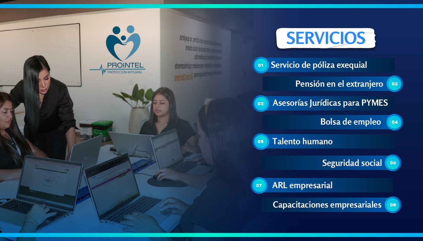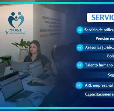Fue así como nació en 2012 Protección Integral PROINTEL, con un propósito claro: ser el aliado estratégico que las empresas necesitan para crecer con seguridad. Ofrecemos soluciones integrales en gestión jurídica, laboral y administrativa a través de un modelo de outsourcing especializado, permitiendo a nuestros clientes enfocarse en su negocio mientras nosotros nos ocupamos del resto.